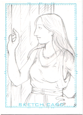 2 November 2007 While I sit waiting for events at the convention this weekend, I've been doing some sketching to try to get back into fighting form. Drawing form. Both, really. I have little sketch cards--which are just small bits of illustration board with a fancy name and some guidelines and a little slipcase to hold them in--so I'm using them to doodle on, and will scan and post the pencils and/or inks.