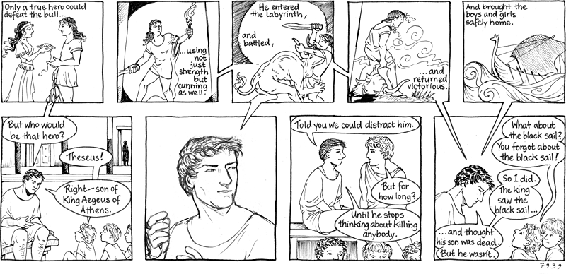 In the strip that was skipped (#LVI), Felix announces he needs to go out and get himself cleaned up. Hence his being out and cleaned up. Apologies for the missing comic.